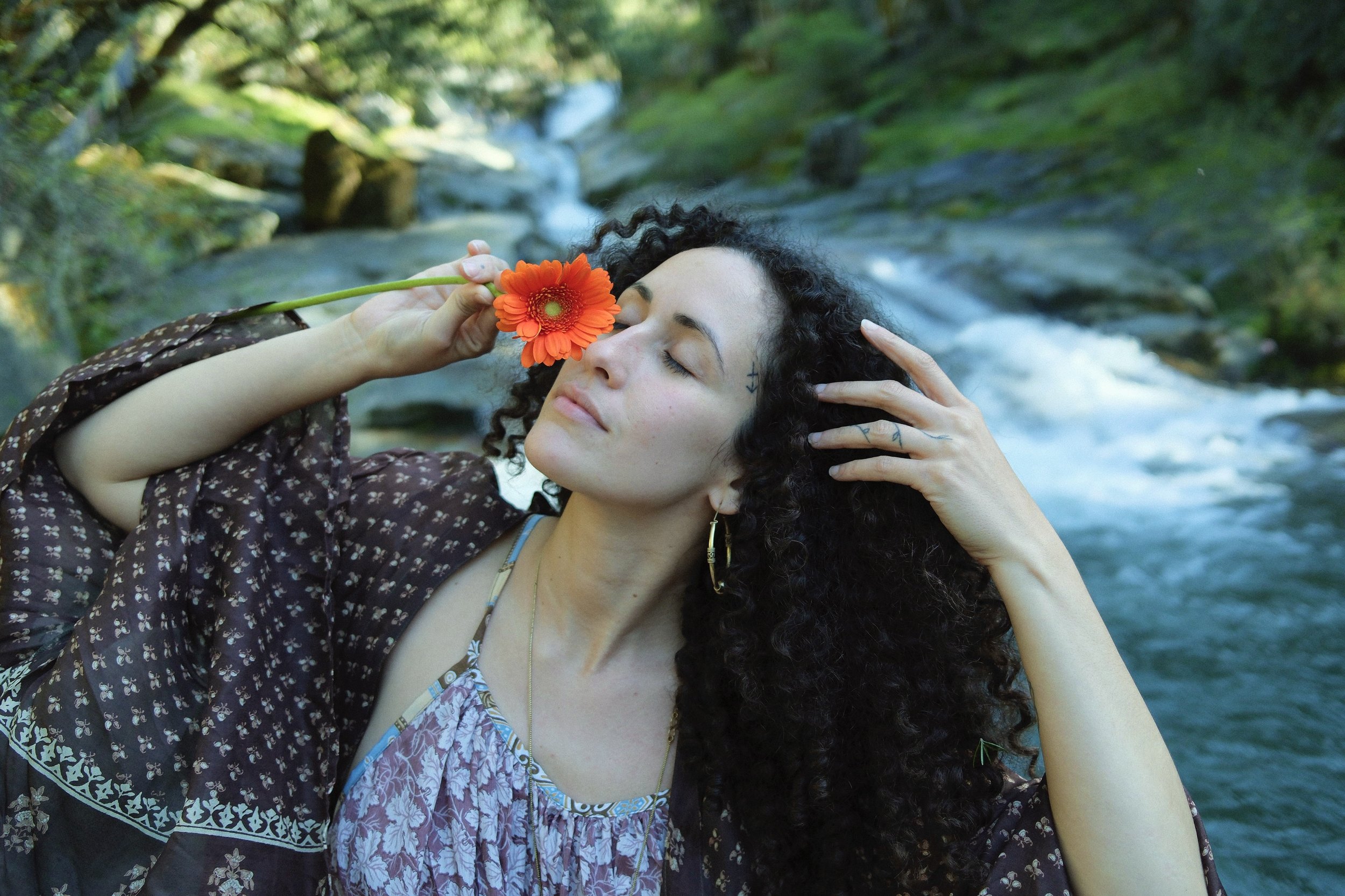 Pleasure teachings, breathwork, singing, dance, soft landing into the body, self-massage, and body mapping.